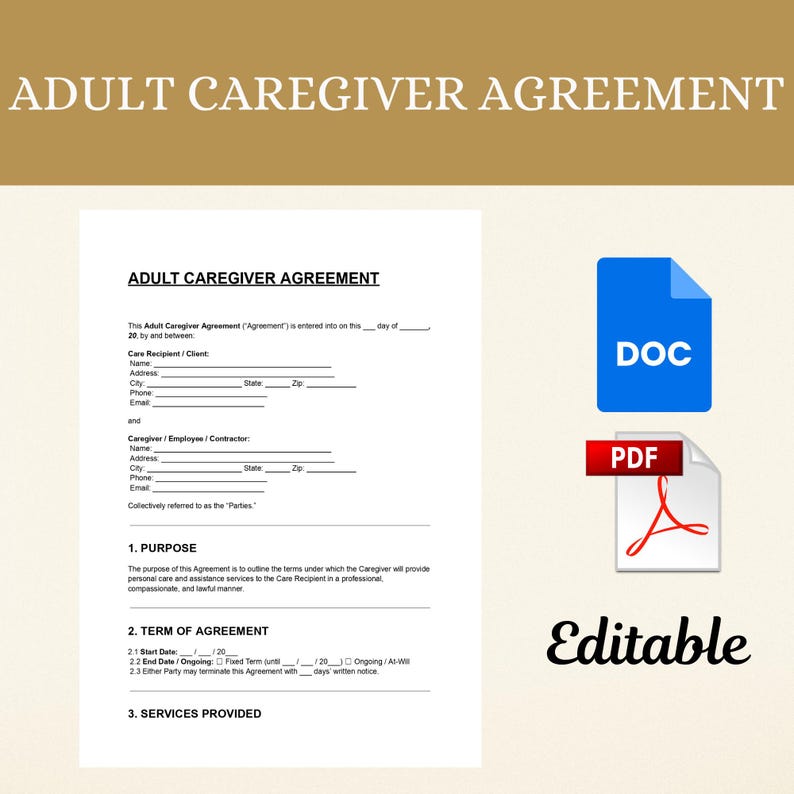 Caregiver Agreement Template DOC PDF Editable Home Care