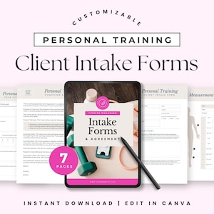 Personal Trainer Client Intake Forms Bundle: Customizable Canva