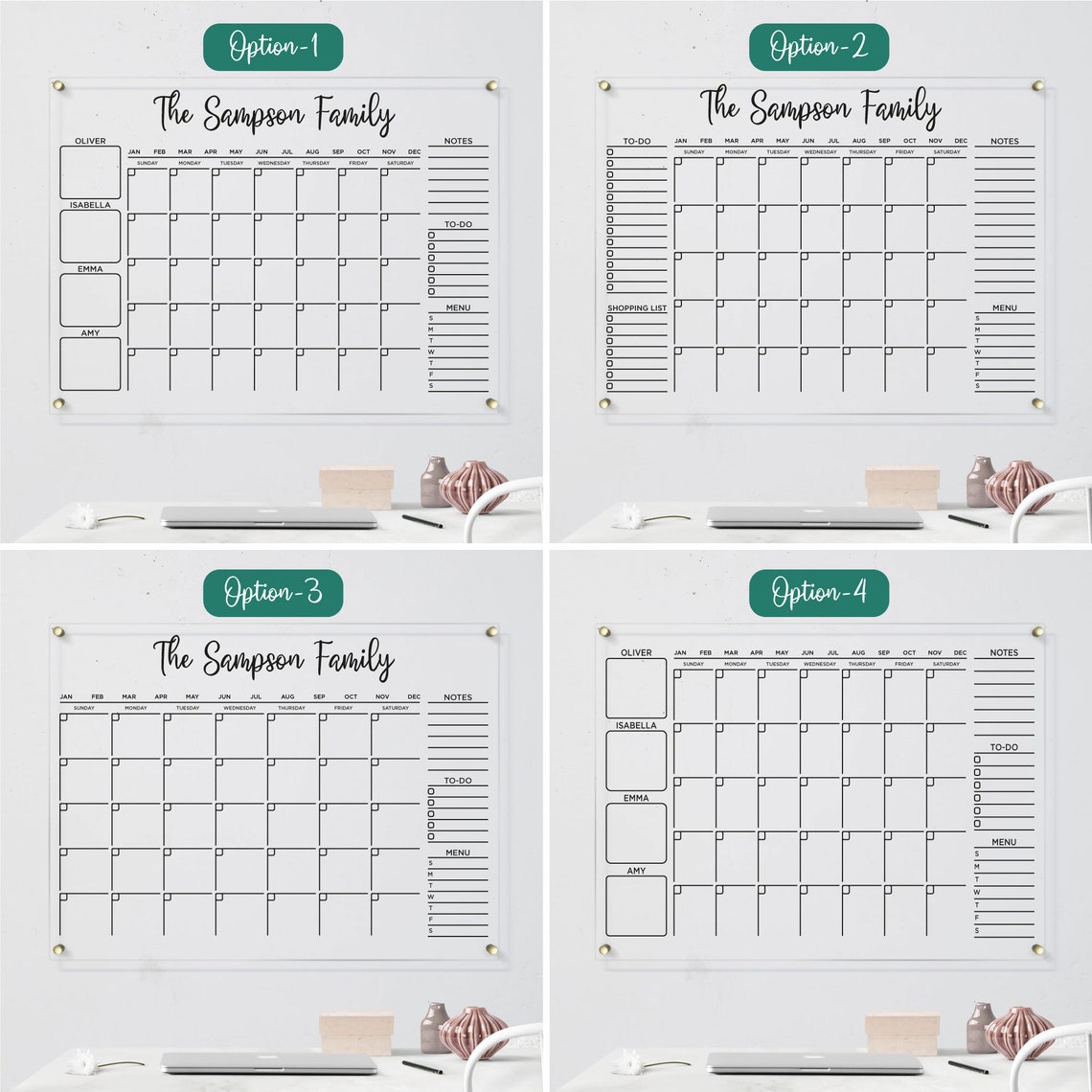 Acrylic Wall Calendar Personalized Family Planner Monthly Etsy