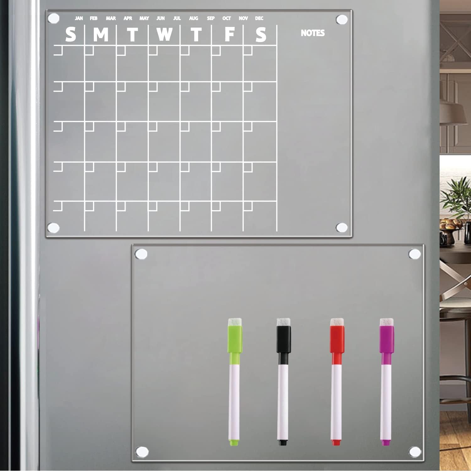 Tislly Acrylic Calendar Fridge 2Pcs Magnetic Calendar Fridge Dry Erase