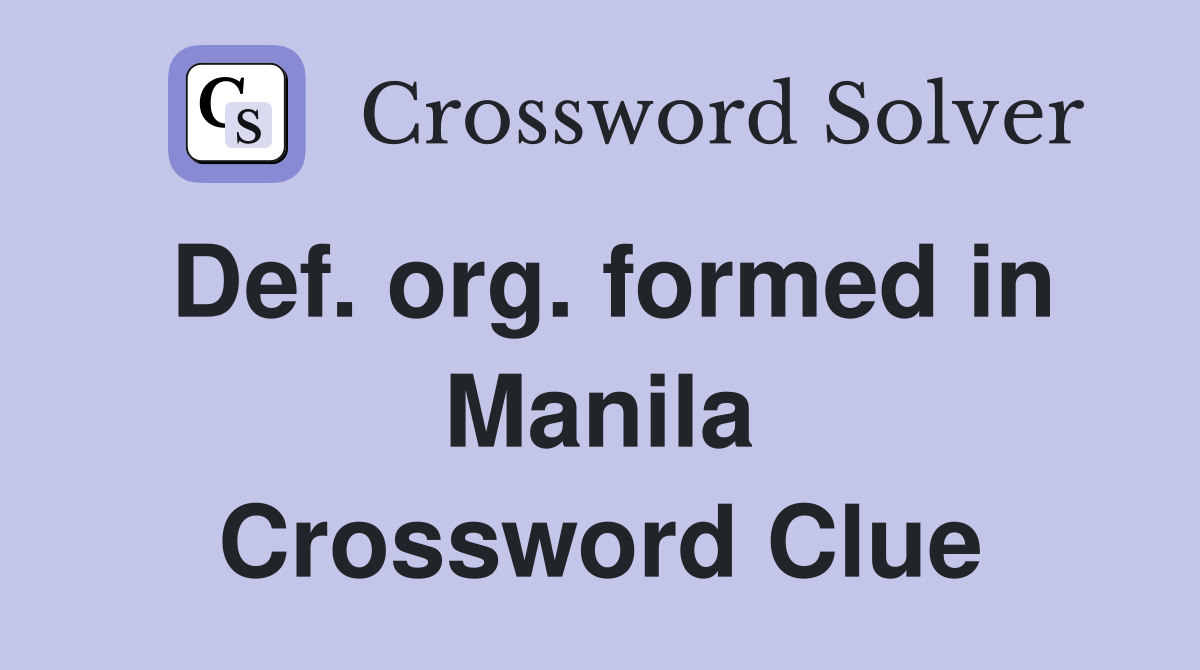 Def org formed in Manila Crossword Clue Answers Crossword Solver