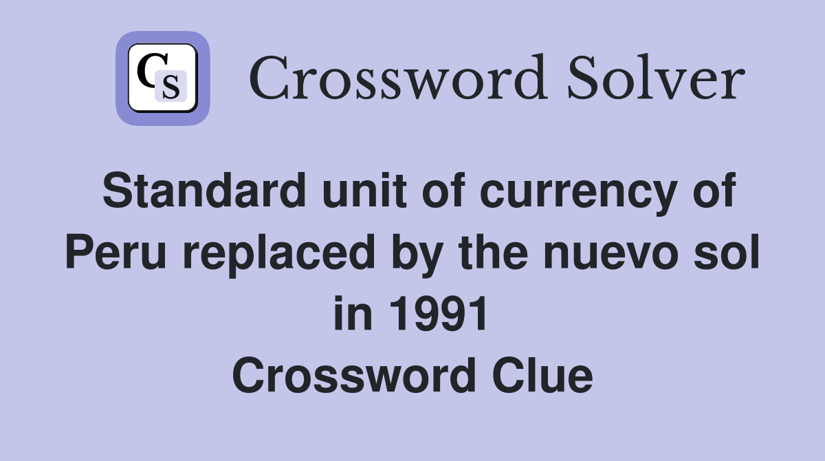 Standard unit of currency of Peru replaced by the nuevo sol in 1991