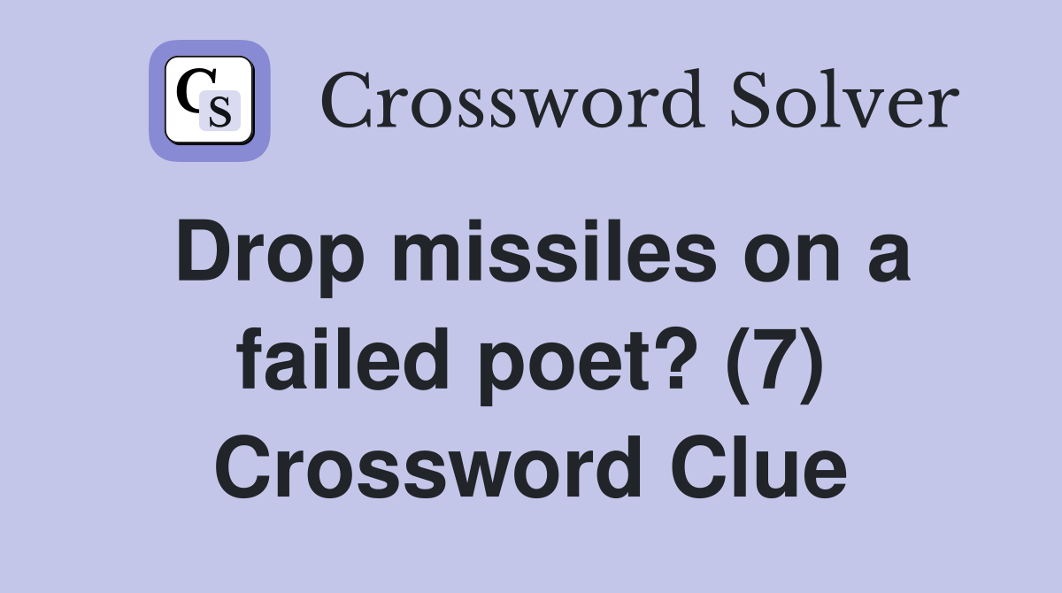 Drop missiles on a failed poet? (7) Crossword Clue Answers