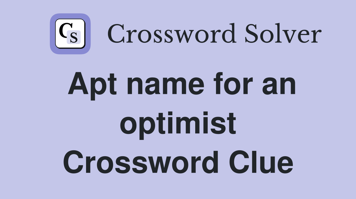 Apt name for an optimist Crossword Clue Answers Crossword Solver