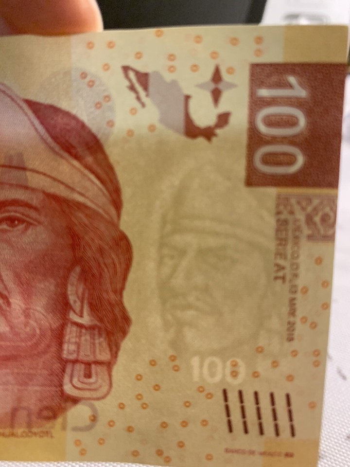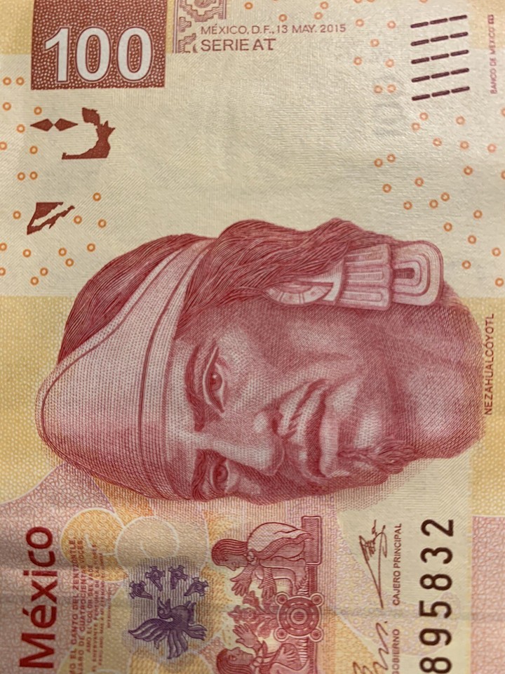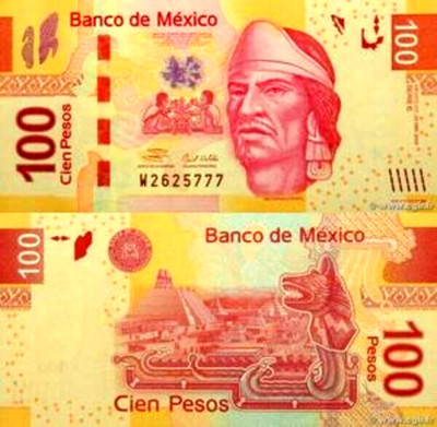 New Mexican money bills currency Mexico 100 pesos banknote close up
