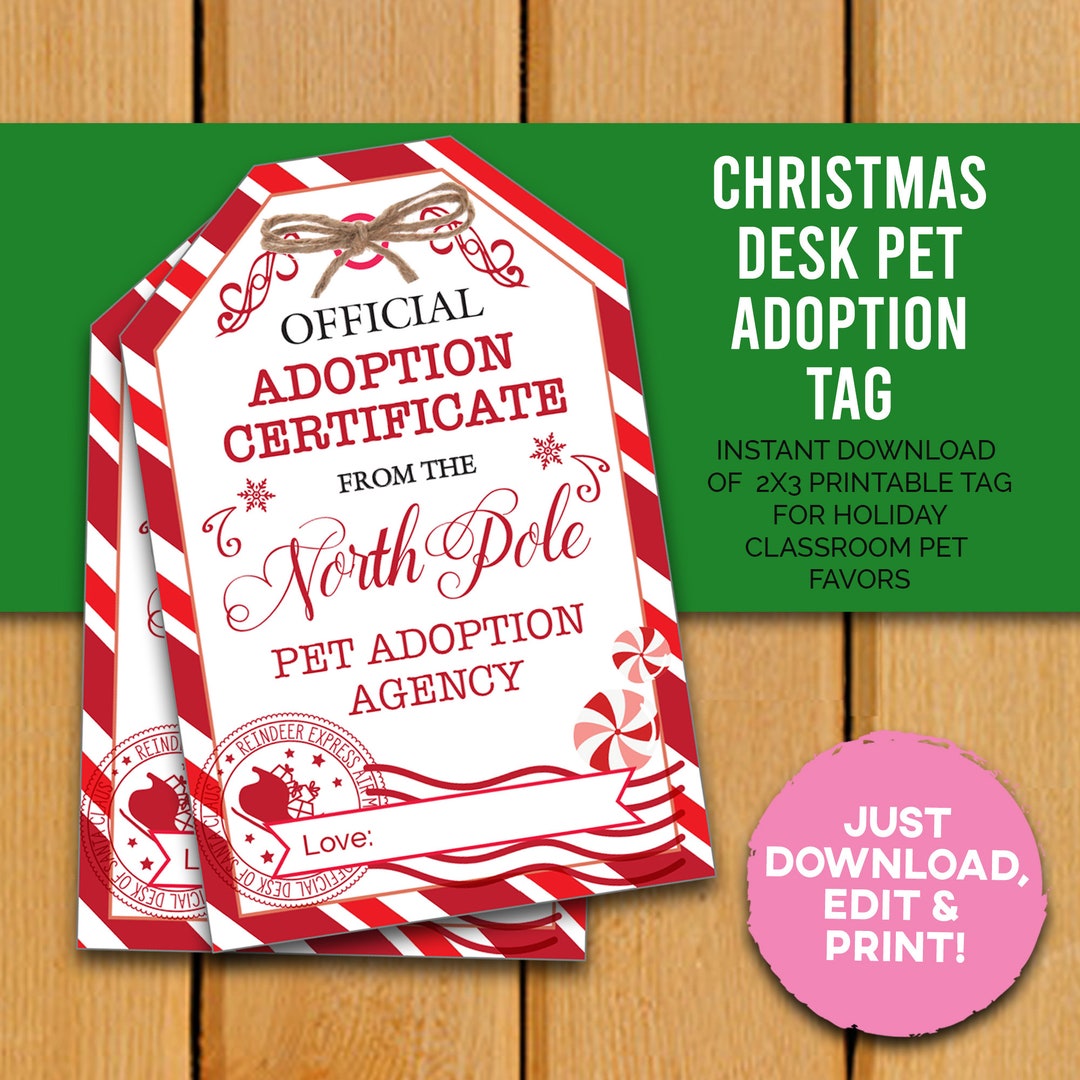 Pet Adoption Gift Tags Holiday Classroom Favor Tags for Pets Desk