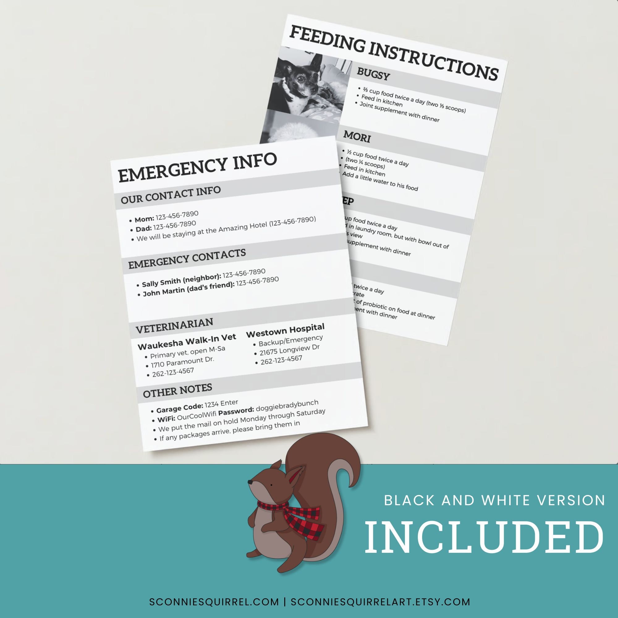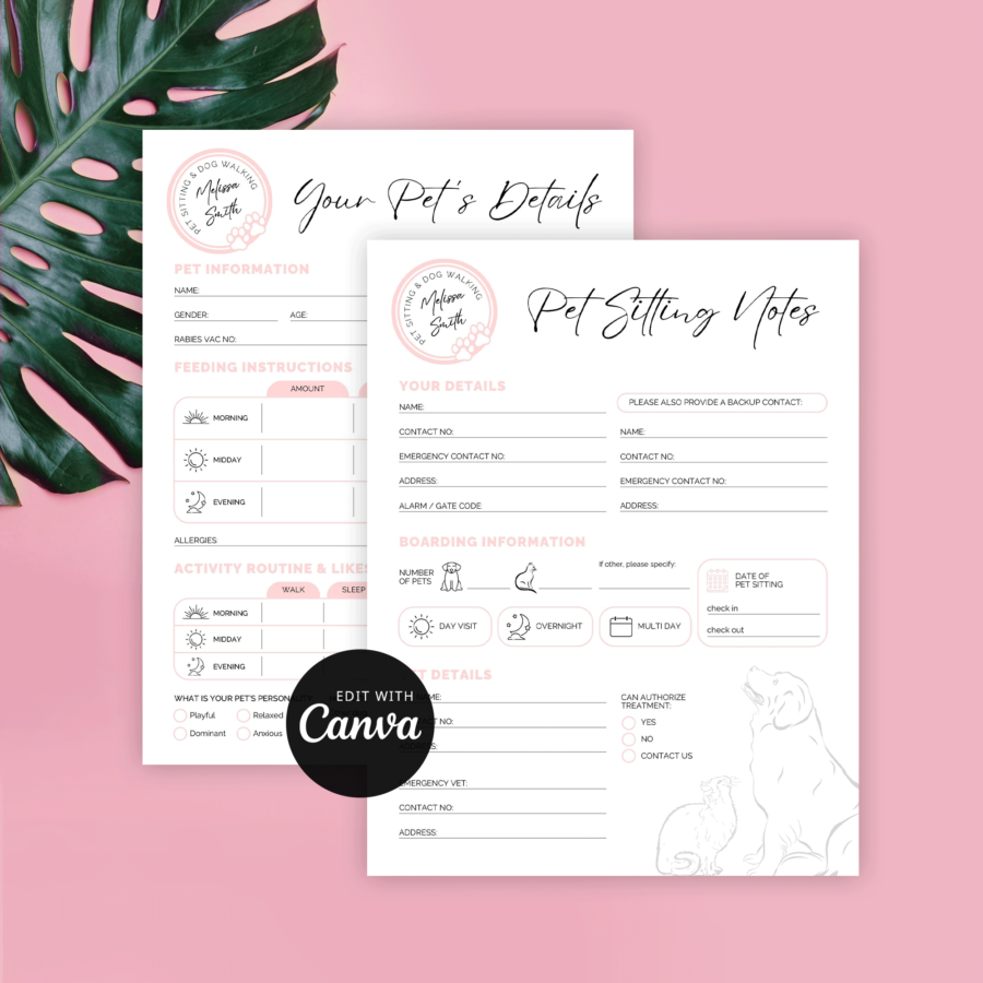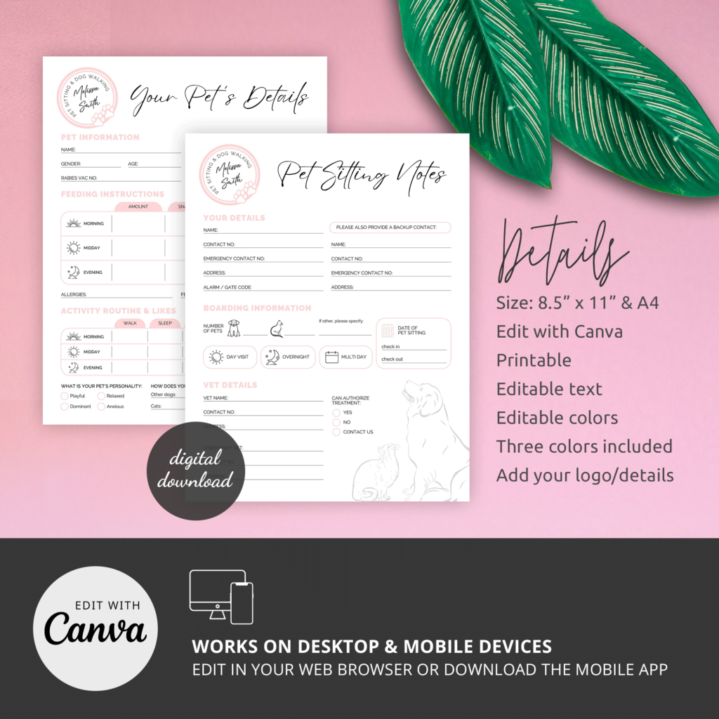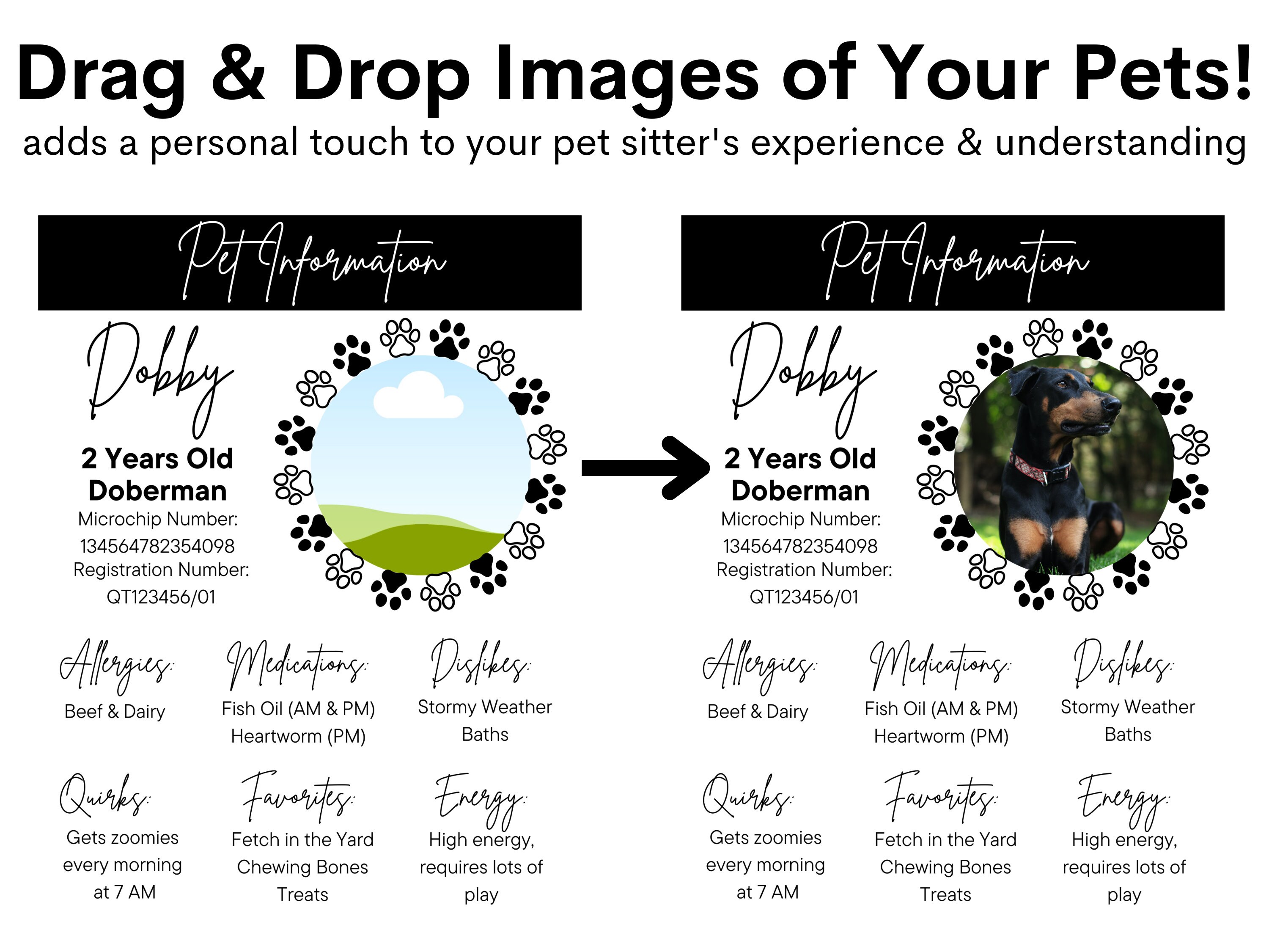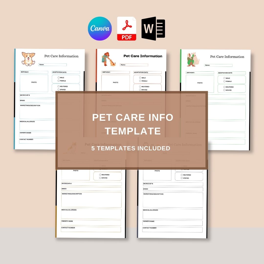 Pet Information Pages Editable Template Pet Sitter Daycare