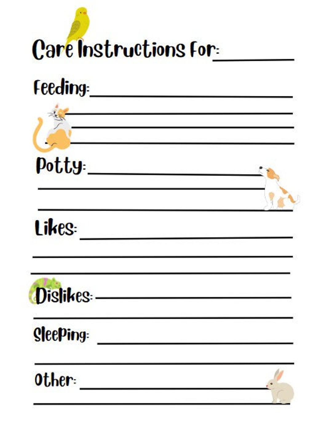 Pet Care Instructions Template Pet Sitter Notes Pet Sitter