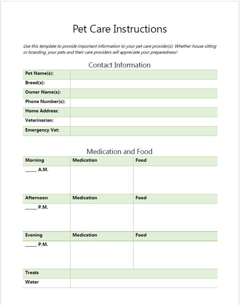 Pet Sitter Instructions Template Google Docs Educational Printable