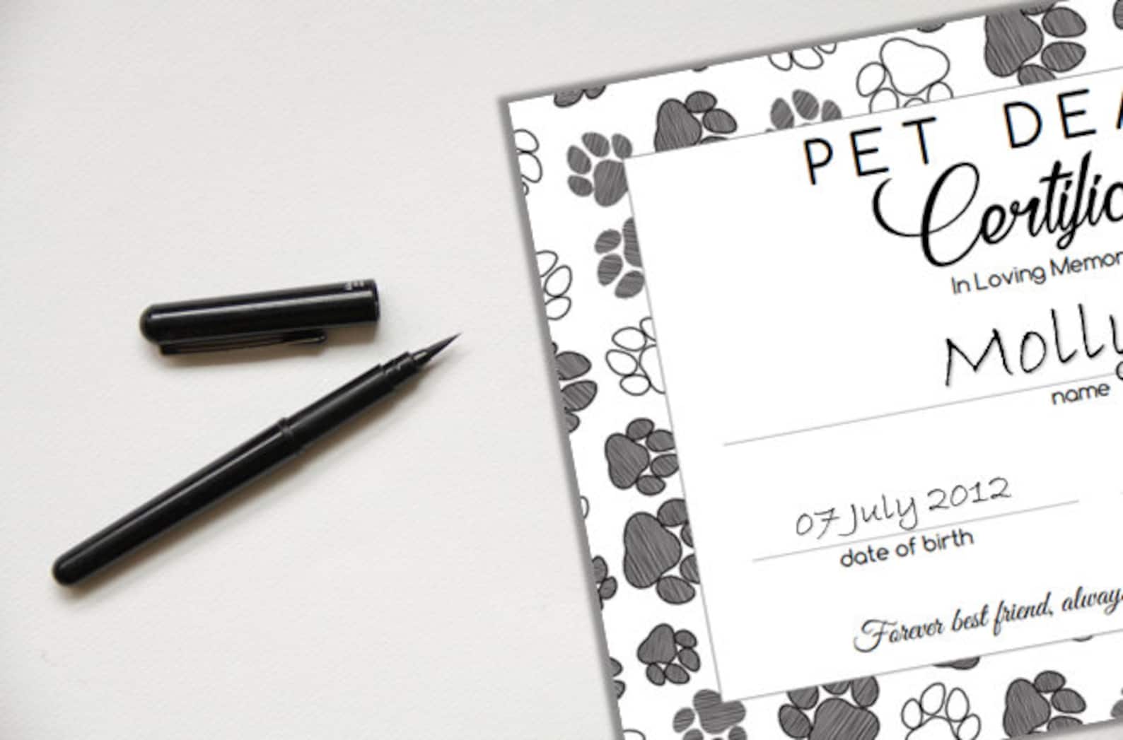 Pet Death Certificate Paws (instant Download) Etsy