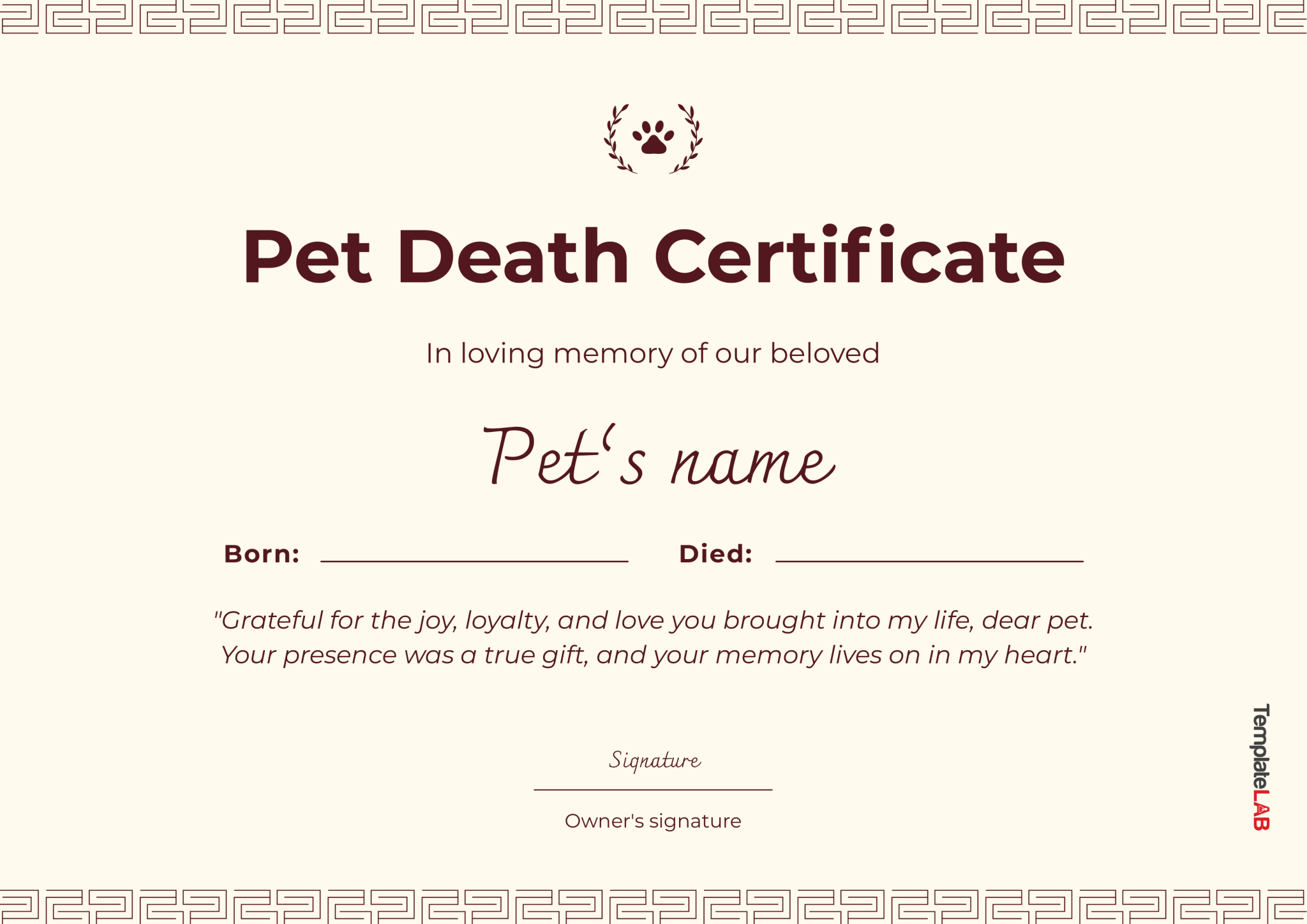 Free Pet Death Certificate Template to Edit Online