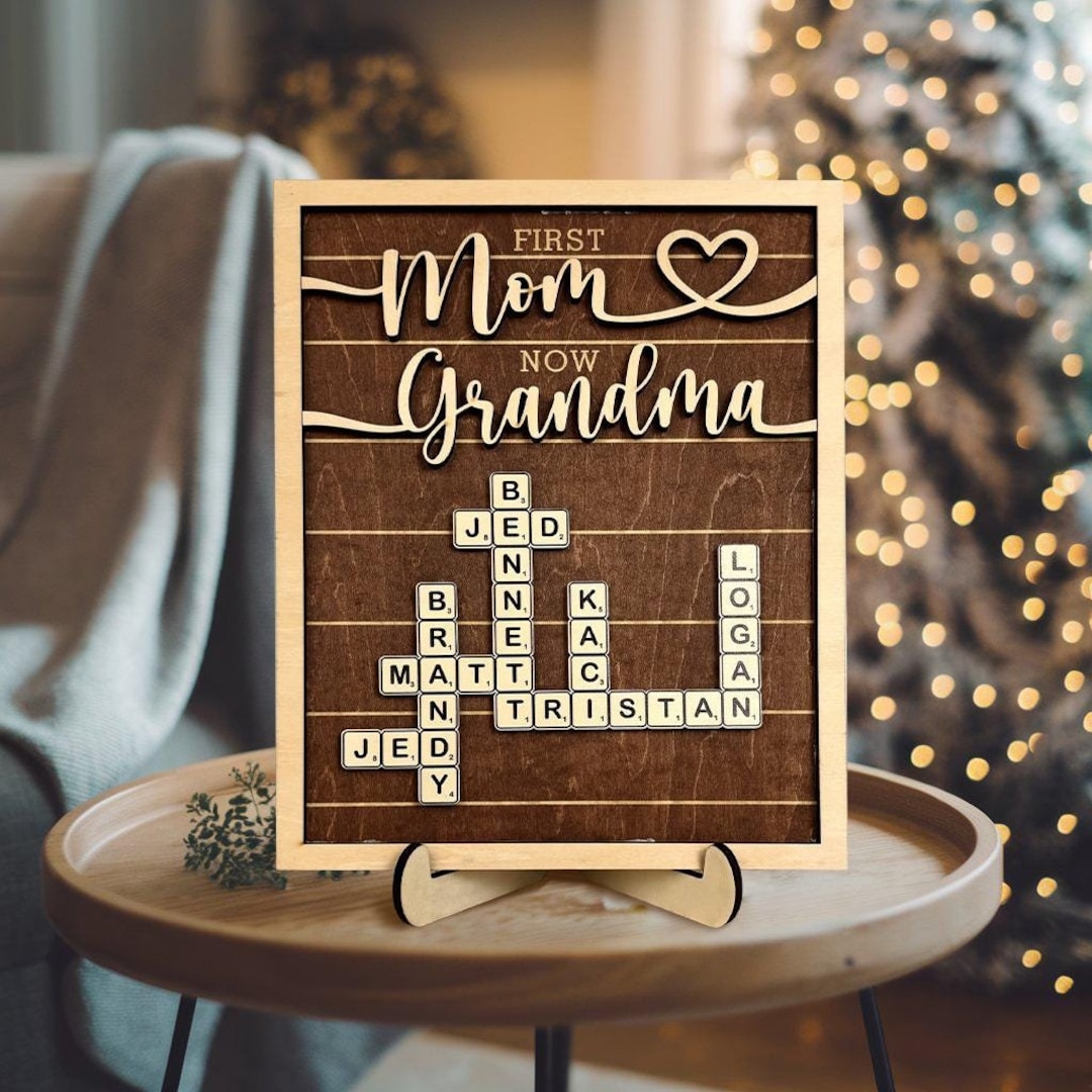 Personalize First Mom Now Grandma Crossword Puzzle Grandkis Name Sign