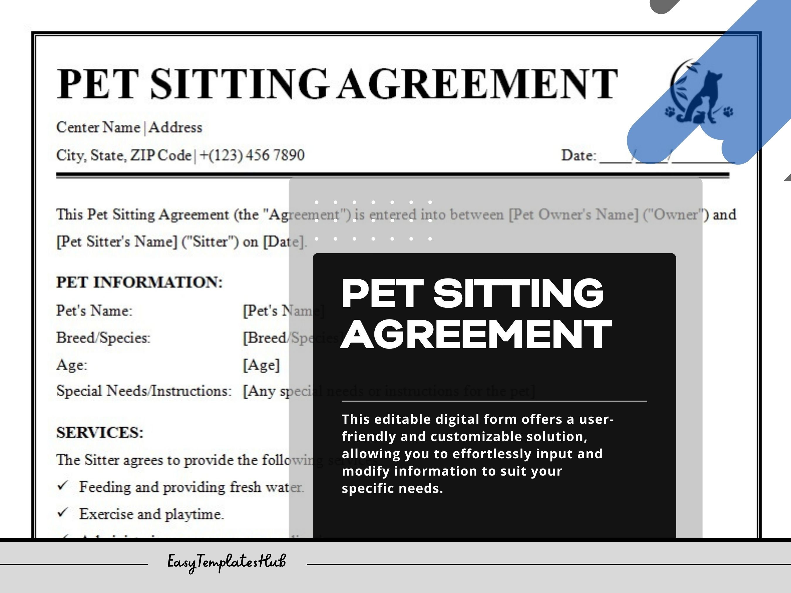 Pet Sitting Contract Template Editable Pet Care Agreement Pet Sitter