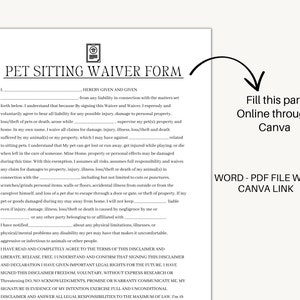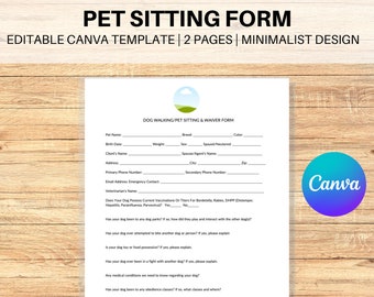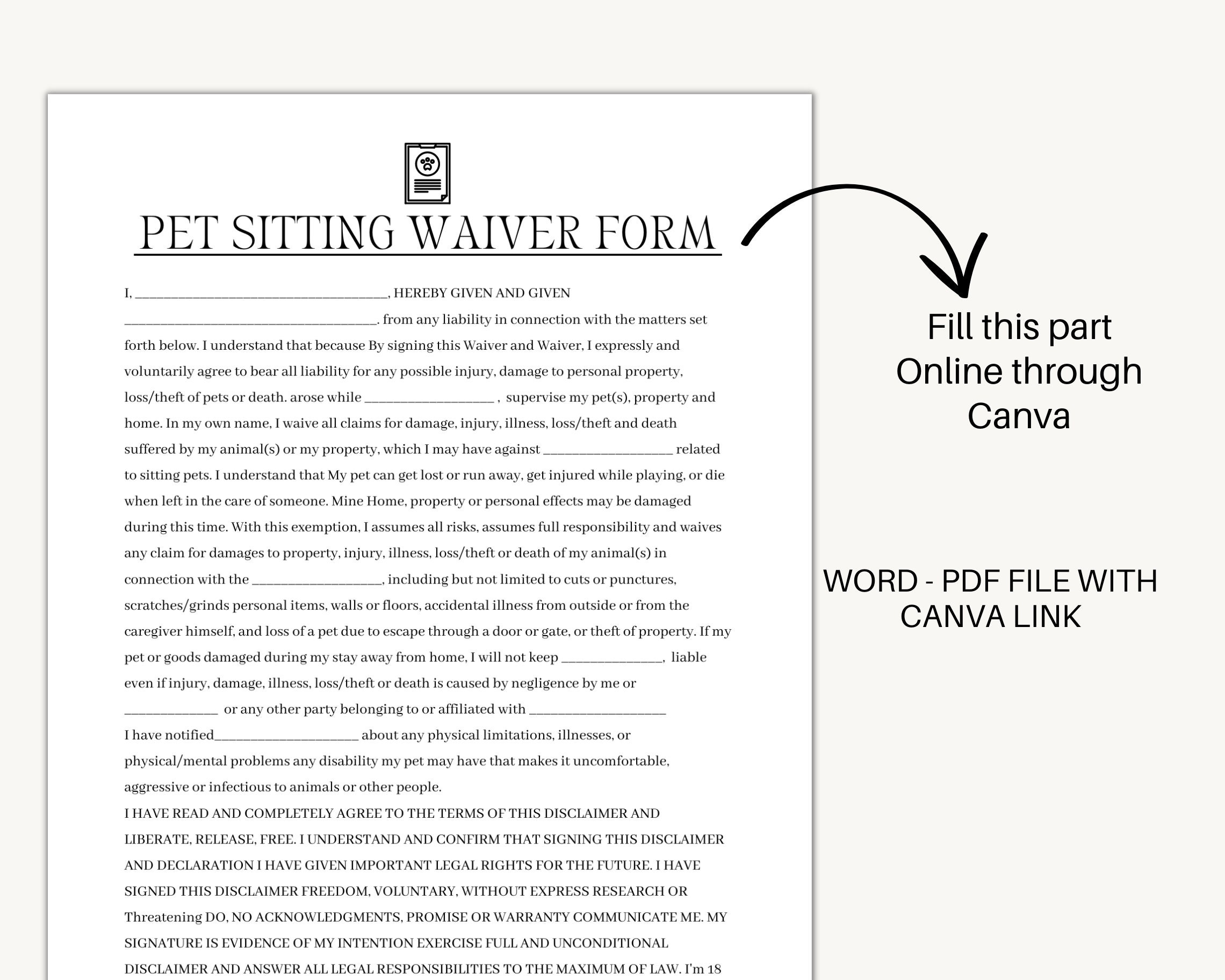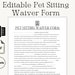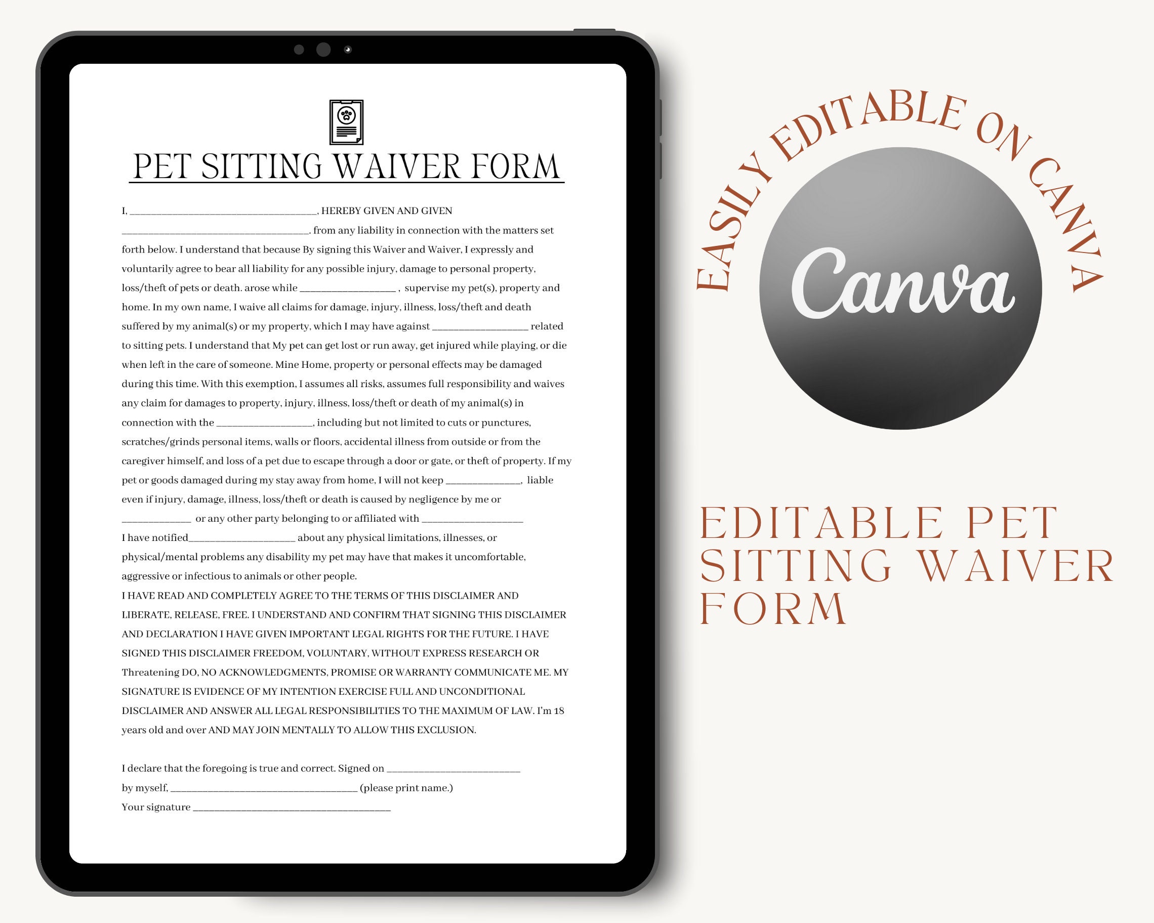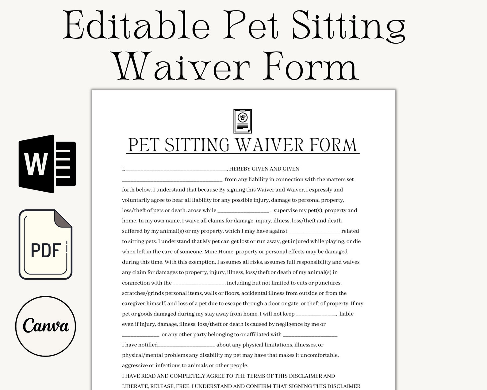 Pet Sitting Waiver Form Pet Sitting Editable Form Dog Etsy Canada