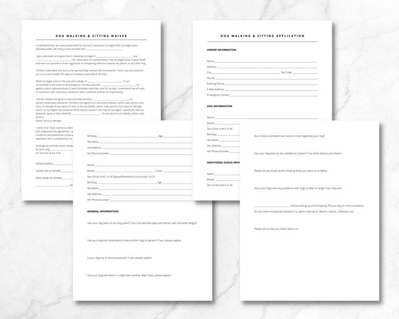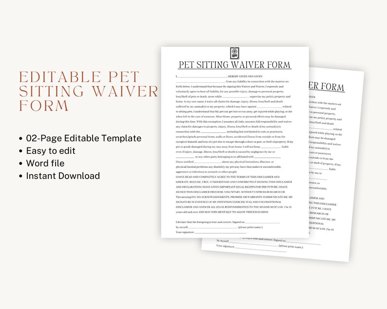Pet Sitting Waiver Form Pet Sitting Release Form Dog Etsy UK