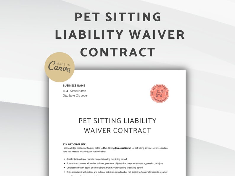 Pet Sitting Liability Waiver Template: Editable Pet Care Contract