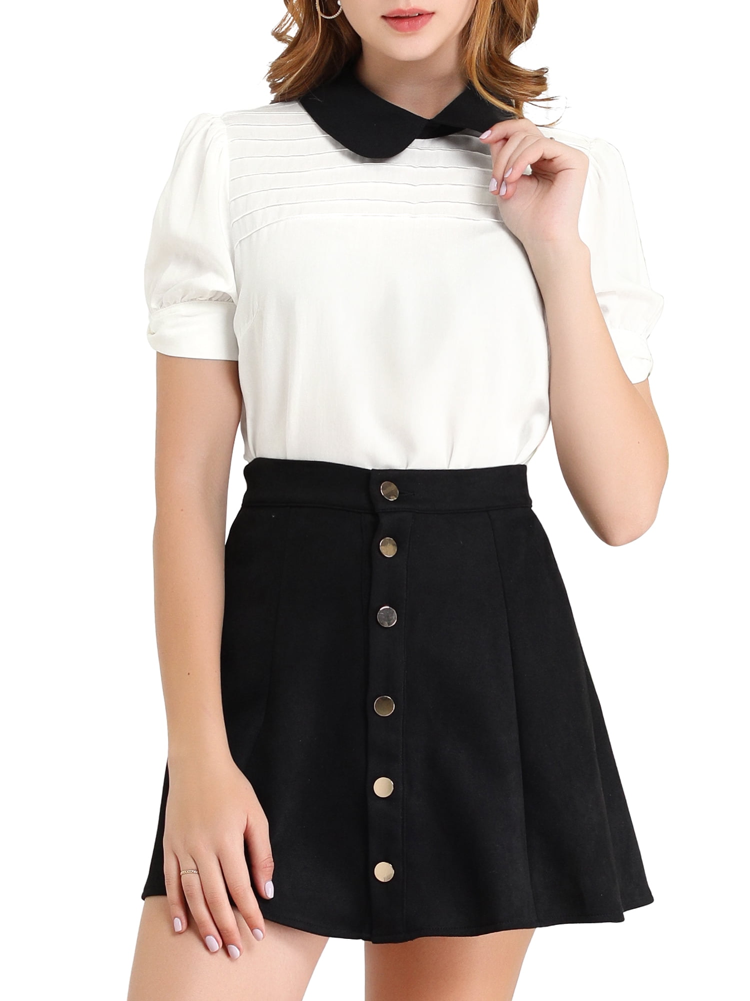 DARING DIVA Peter Pan Collar Contrast Puff Blouse Top M White Walmart com