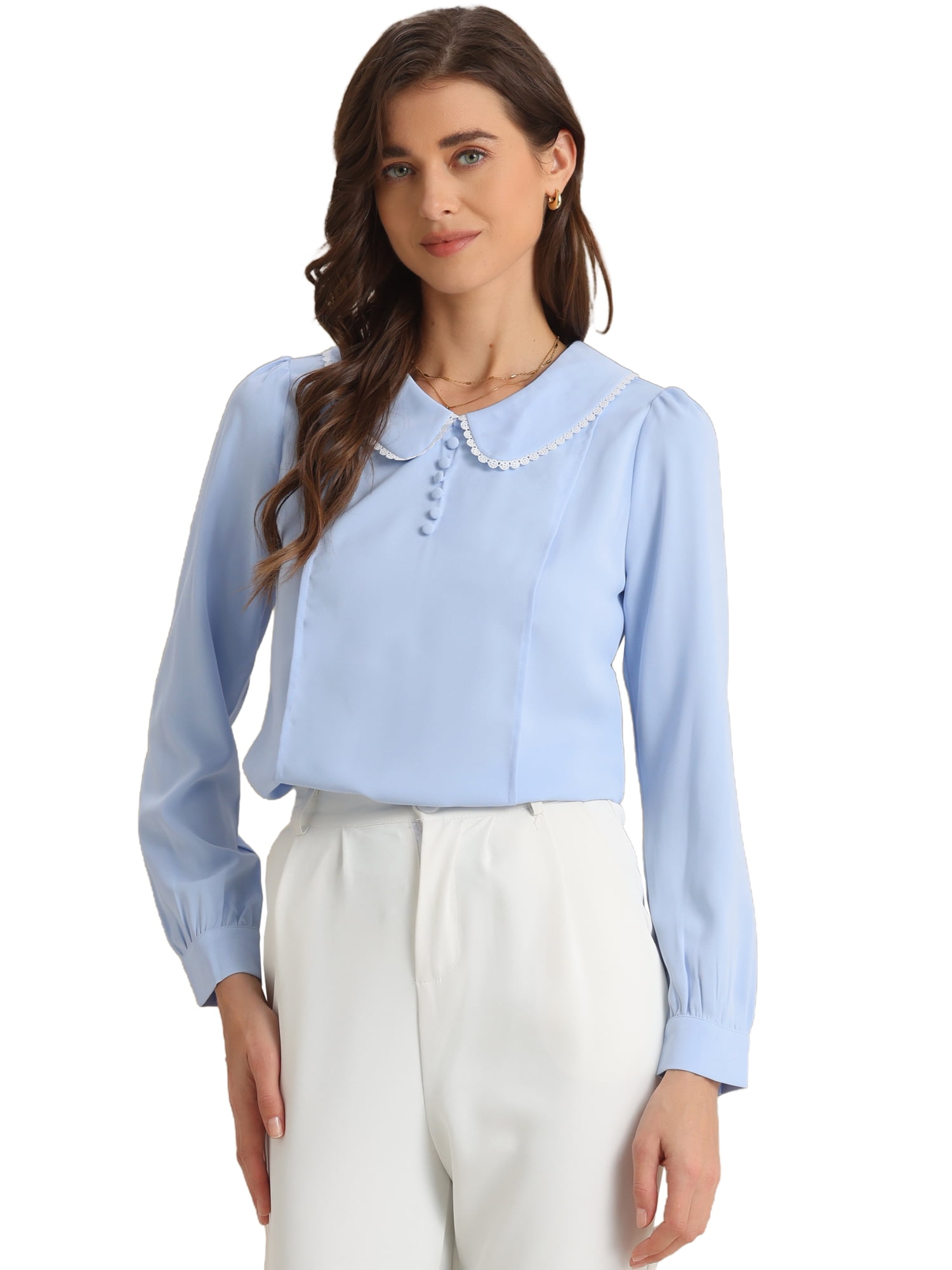 DARING DIVA Women #39 s Peter Pan Collar Long Sleeve Work Office Shirt S