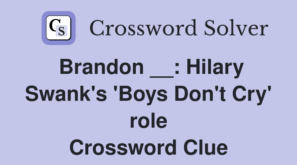 Brandon : Hilary Swank #39 s #39 Boys Don #39 t Cry #39 role Crossword Clue