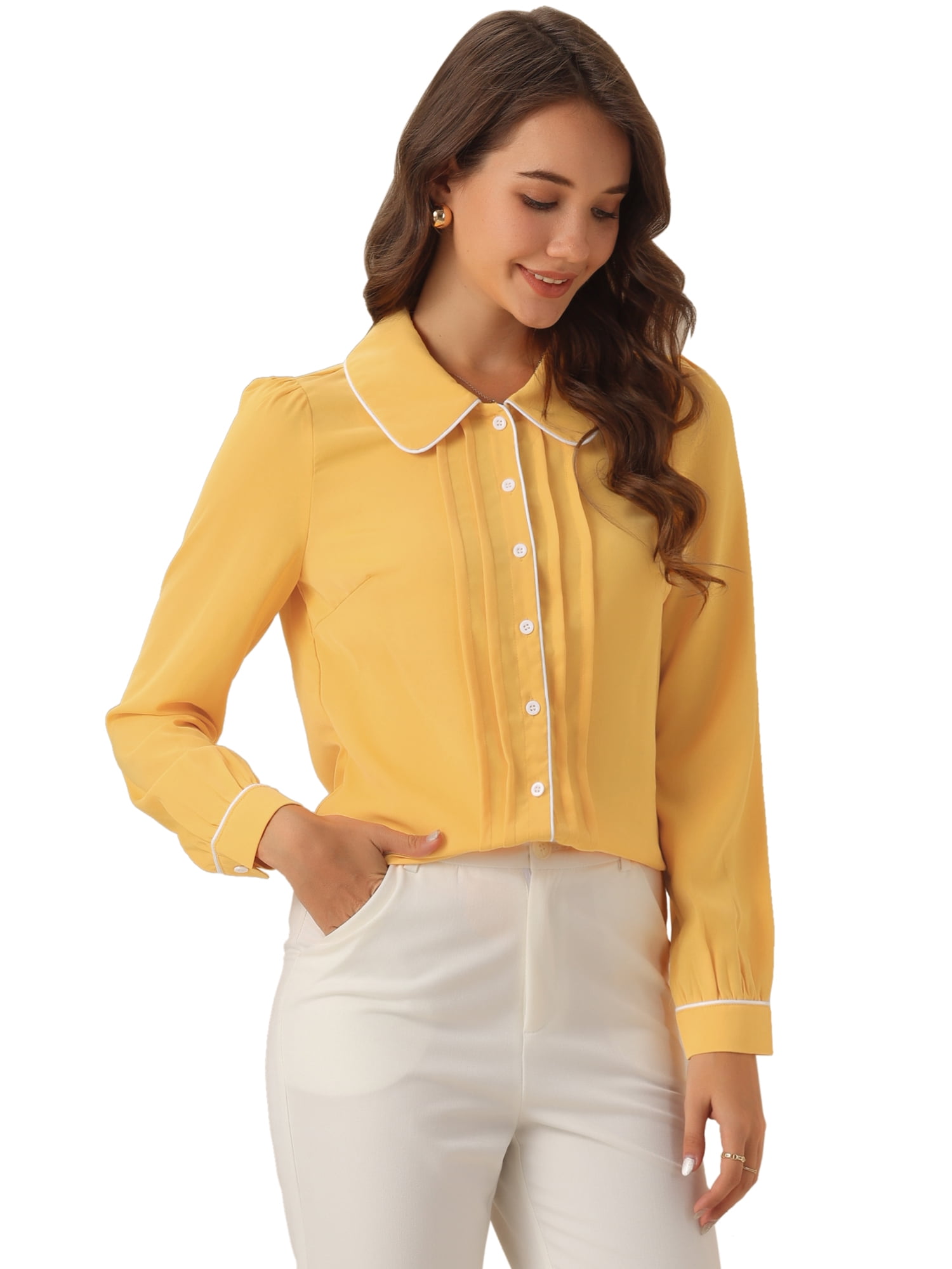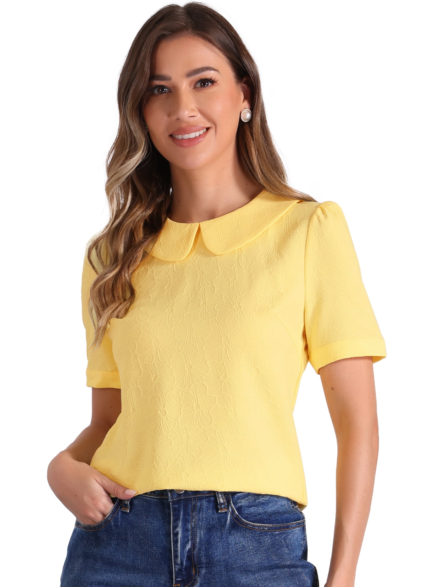 DARING DIVA Women #39 s Peter Pan Collar Puff Sleeve Work Blouse M Yellow