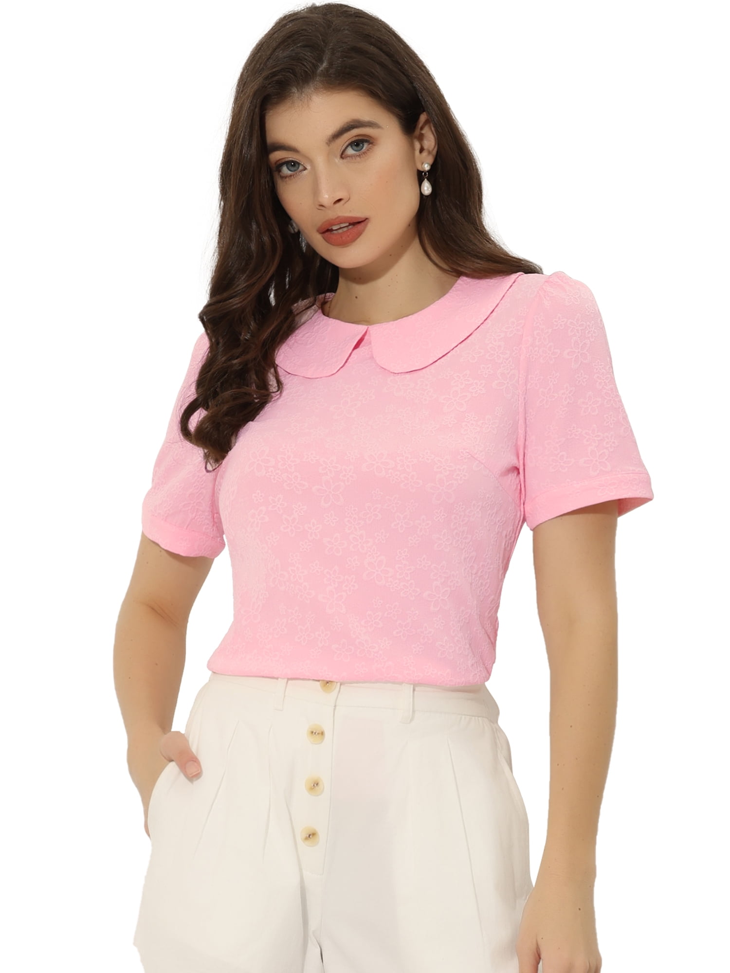 DARING DIVA Floral Puff Kawaii Peter Pan Collar Blouse XL Pink
