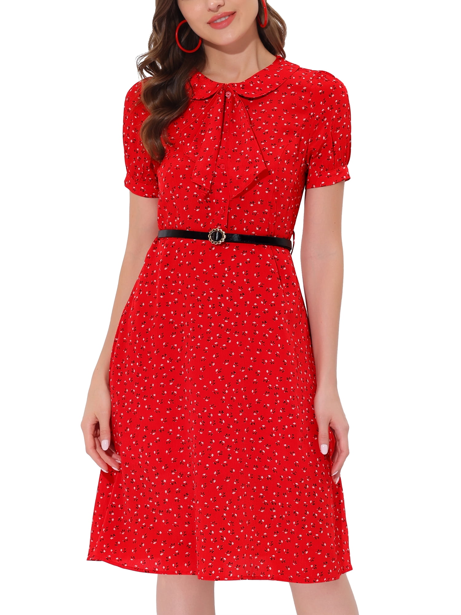 DARING DIVA Peter Pan Collar Tie Neck Elegant Floral Dress with Belt XL