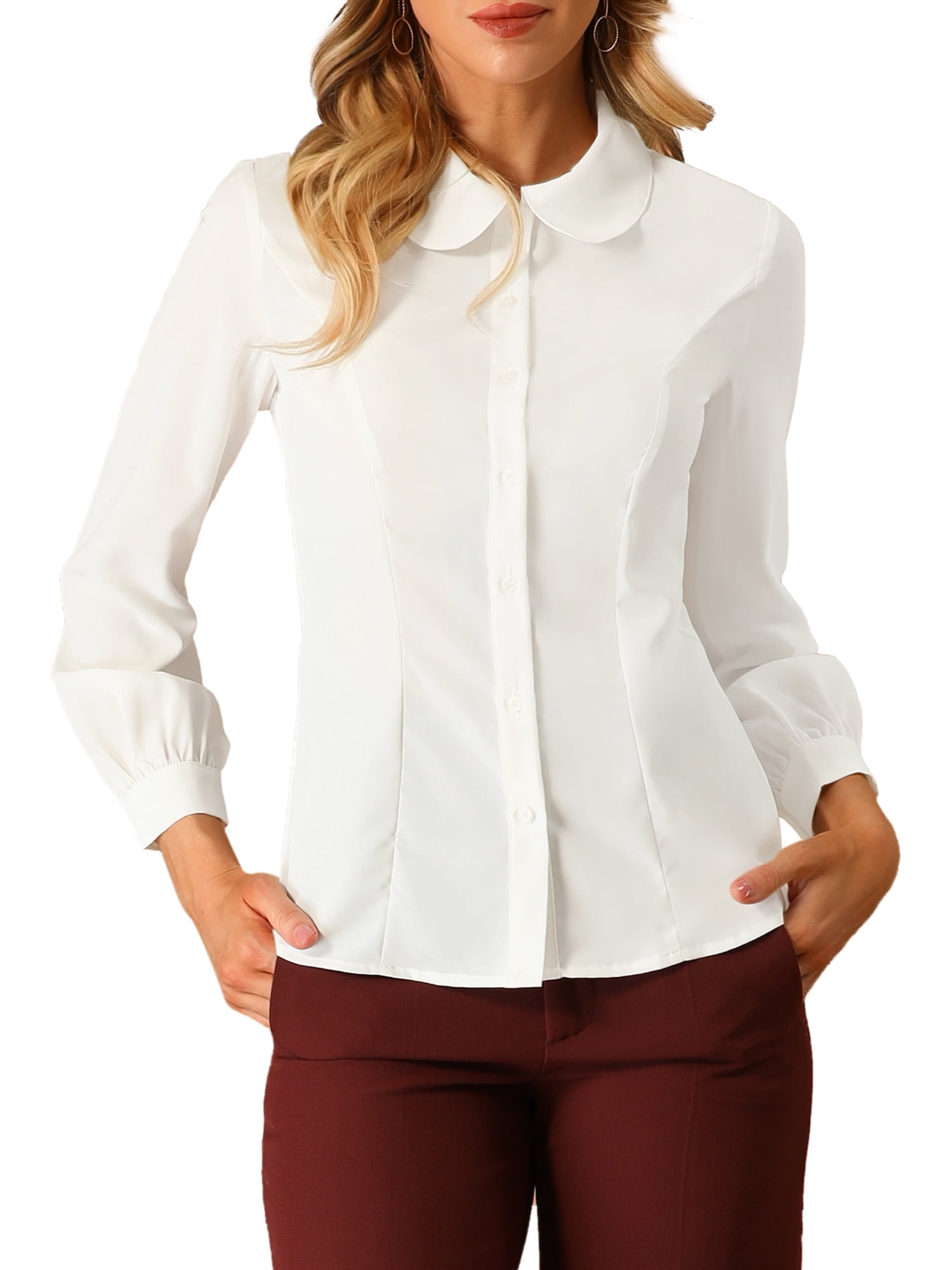 DARING DIVA Women #39 s Peter Pan Collar Long Sleeve Work Office Shirt S