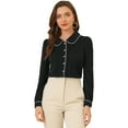 DARING DIVA Women #39 s Peter Pan Collar Contrast Trim Puff Sleeve Shirt XL