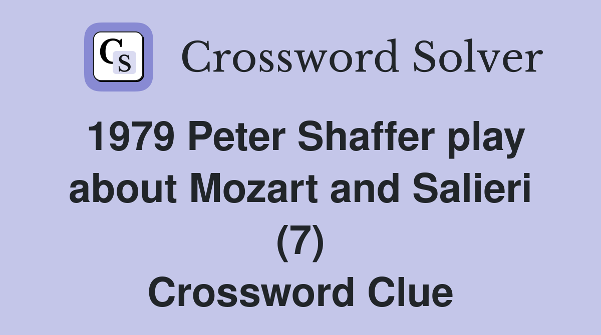 1979 Peter Shaffer play about Mozart and Salieri (7) Crossword Clue