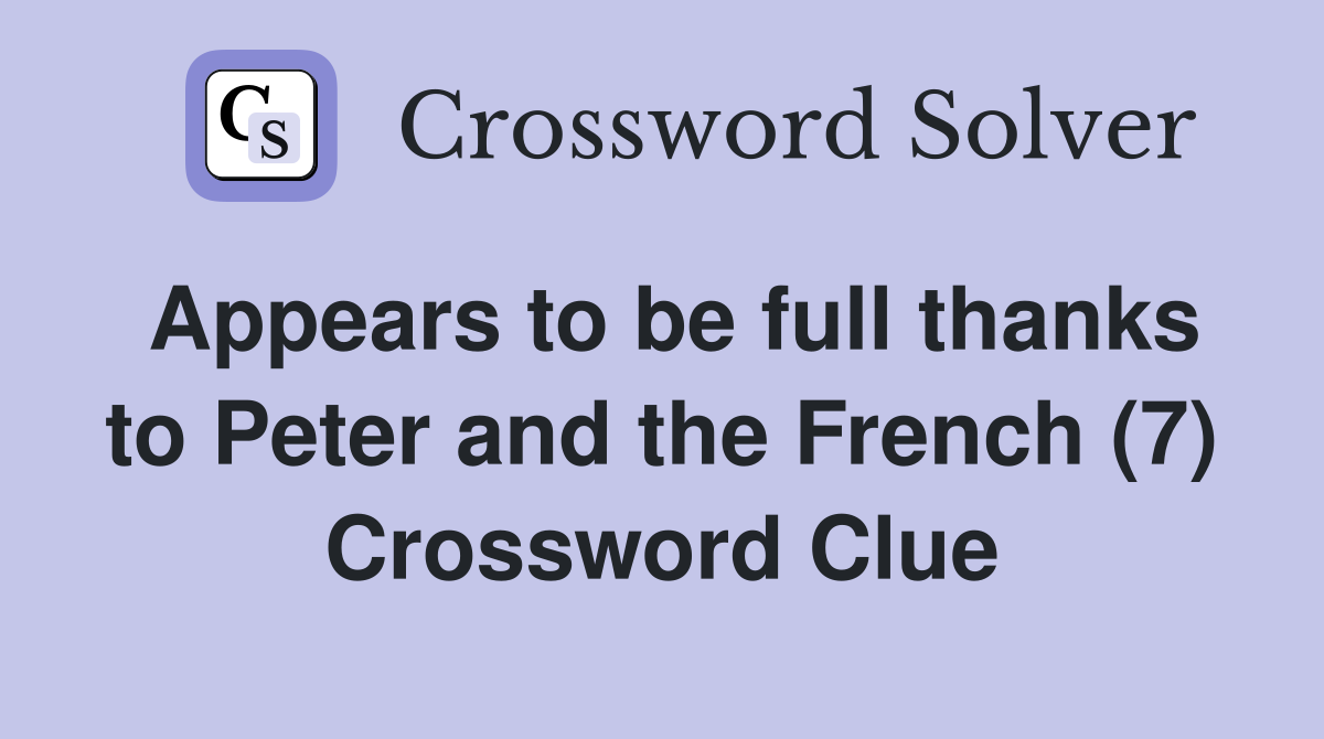 Appears to be full thanks to Peter and the French (7) Crossword Clue