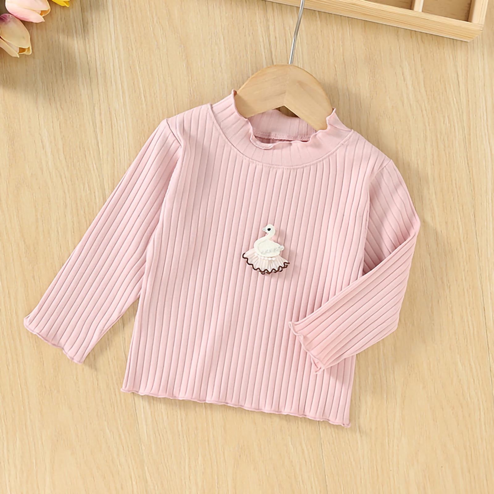 Cowsor Girls Soft Ribbed Peter Pan Collar Bow T Shirt Sweet and Ribbed