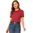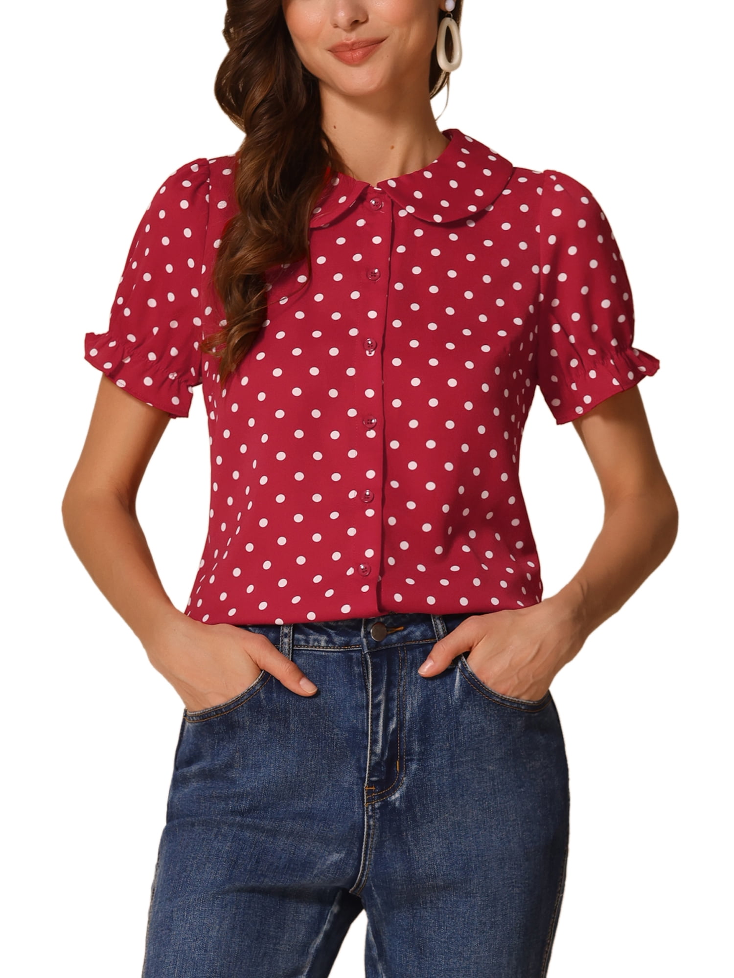 Allegra K Women #39 s Polka Dots Shirt Short Puff Sleeve Vintage Button Up