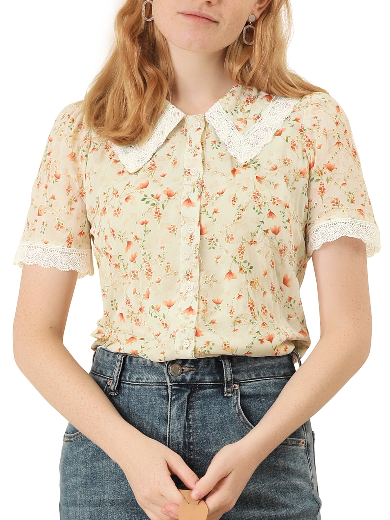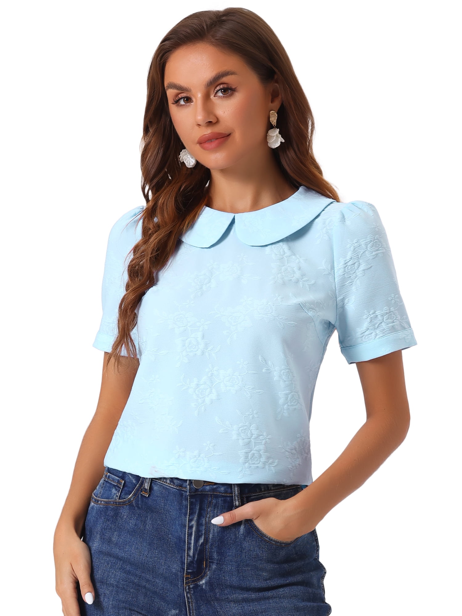 INSPIRE CHIC Women #39 s Peter Pan Collar Shirt Puff Short Sleeve Elegant
