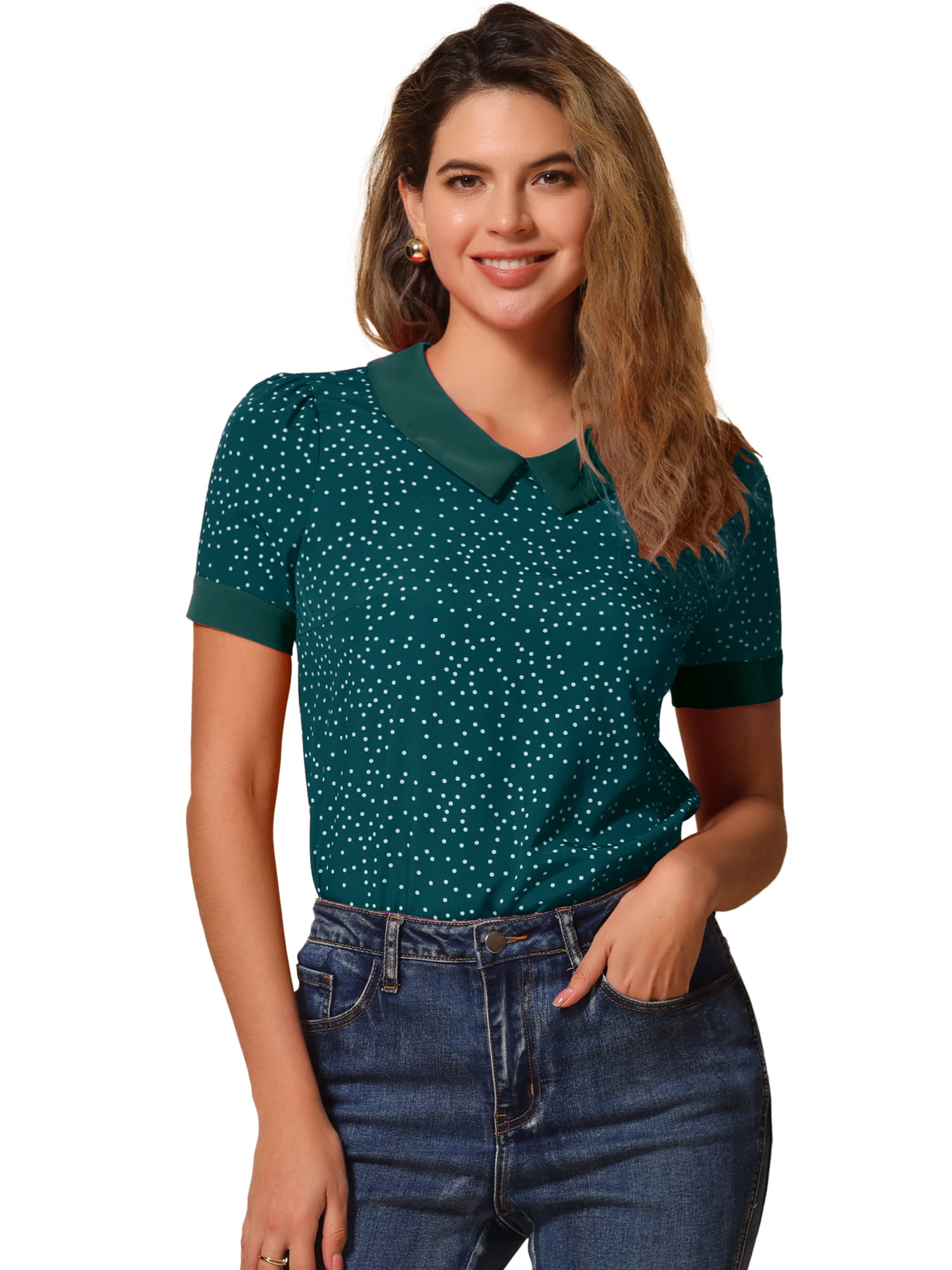 DARING DIVA Women #39 s Peter Pan Collar Polka Dots Short Sleeve Tops S