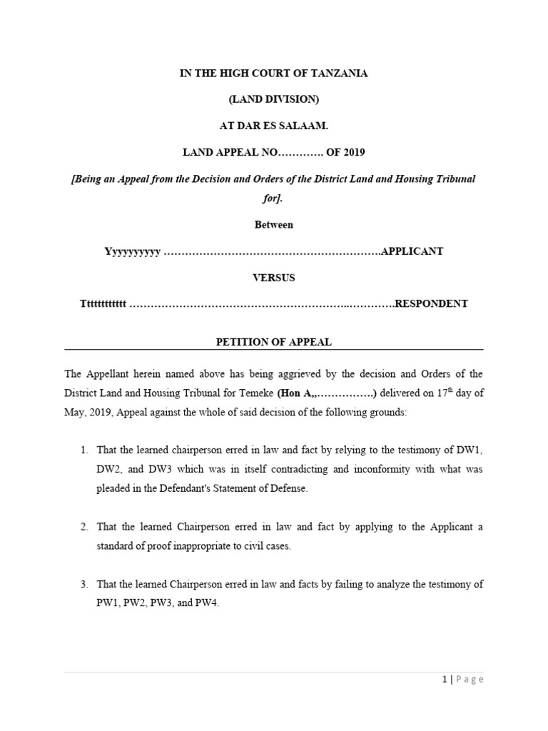 Sample Petition of Appeal PDF Separation Of Powers Public Law