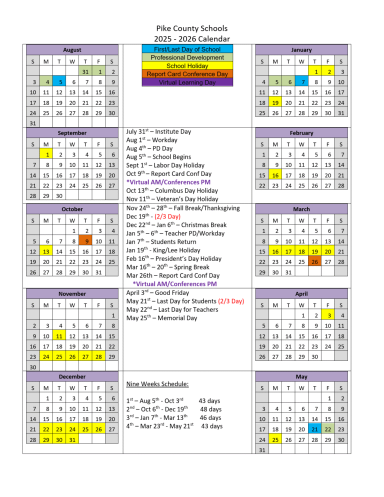 Pike County Schools AL Calendar 25 26 Revised pdf EduCounty