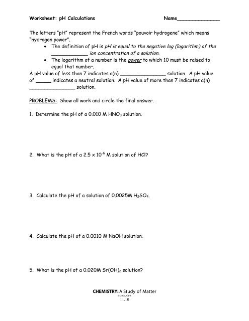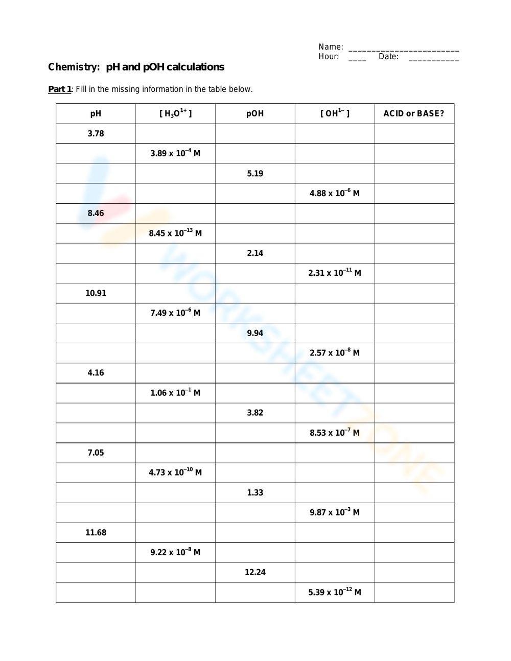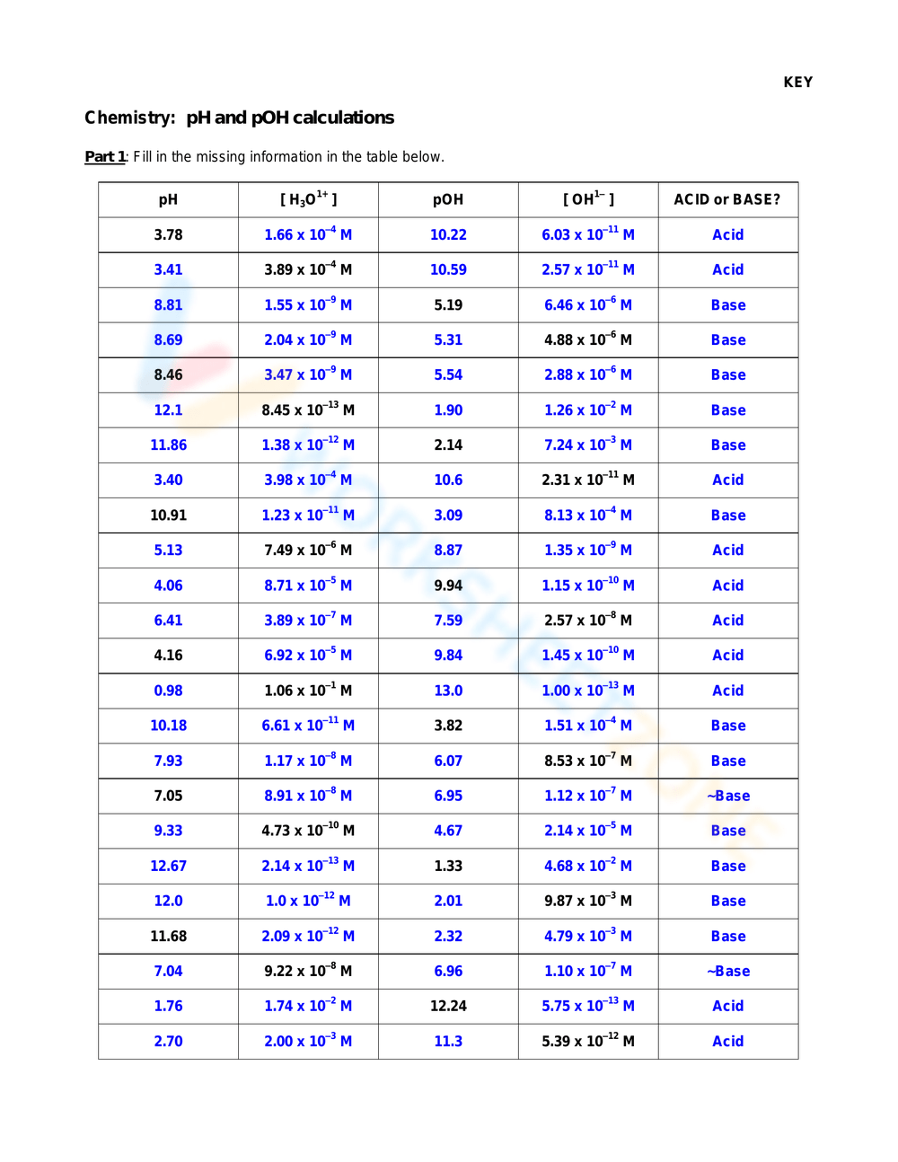 Here are some of the images for Ph Calculations Worksheet Answers Key With Work that we found in our website database.