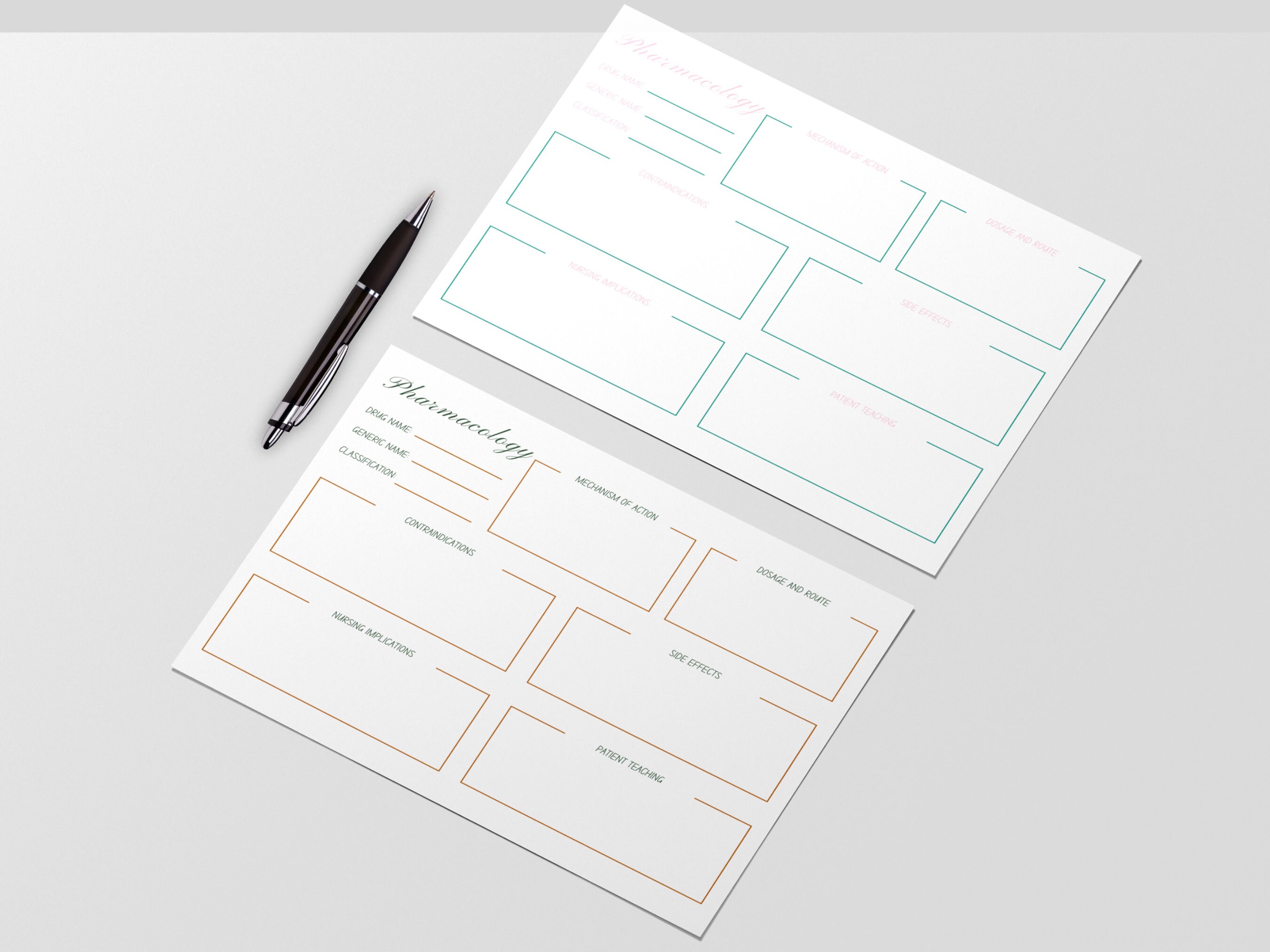 Pharmacology Template Printable Instant Download PDF A4 and US