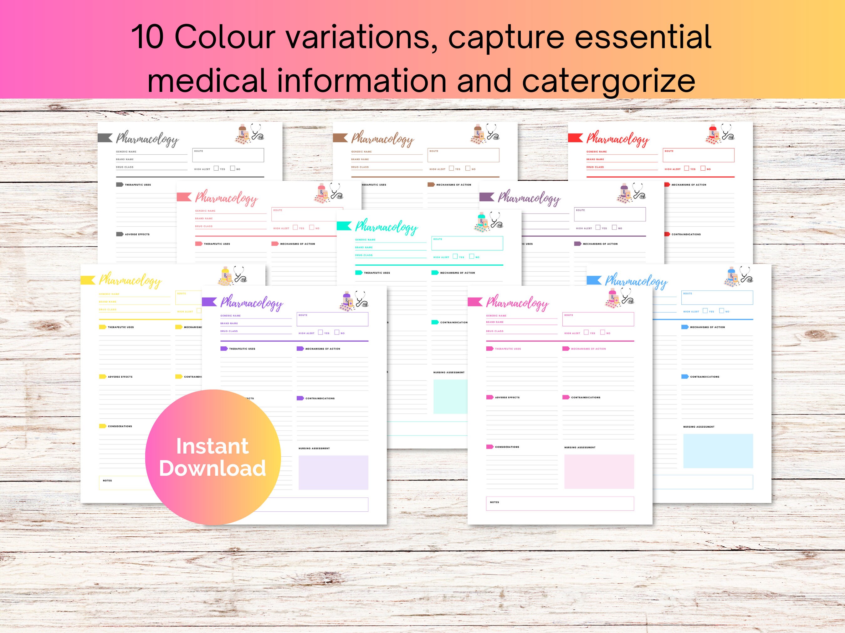 Pharmacology Template Digital Download Editable Printable