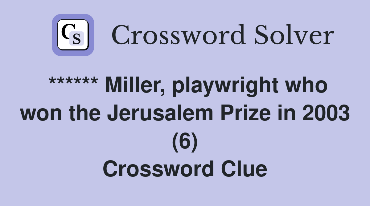 Miller playwright who won the Jerusalem Prize in 2003 (6) Crossword