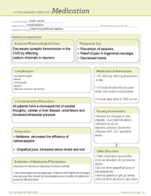 Phenytoin Medication Template: Active Learning Module for Nursing Studocu