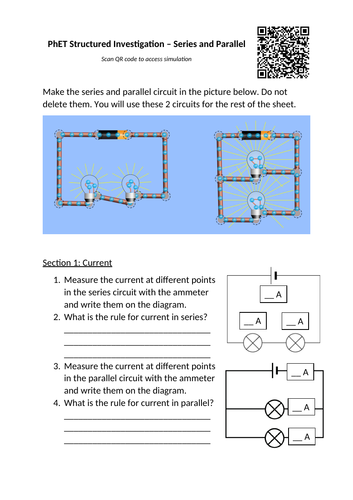 Series and Parallel PhET Structured Investigation Teaching Resources