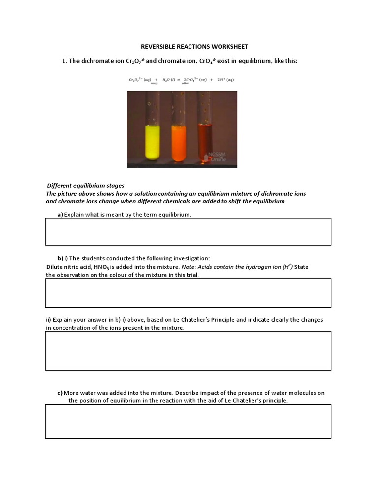 Reversible Reactions Worksheet PDF Chemical Equilibrium Chemical