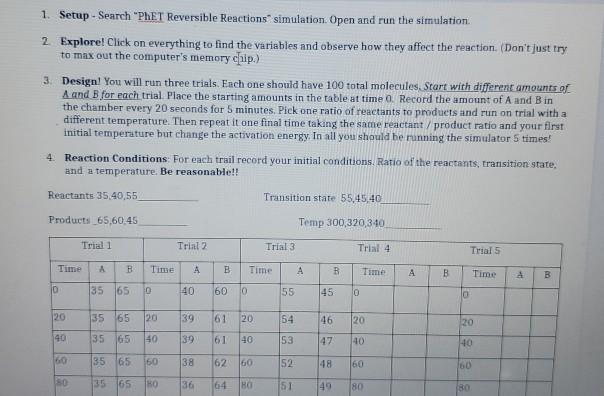 1 Setup Search quot PHET Reversible Reactions Chegg com