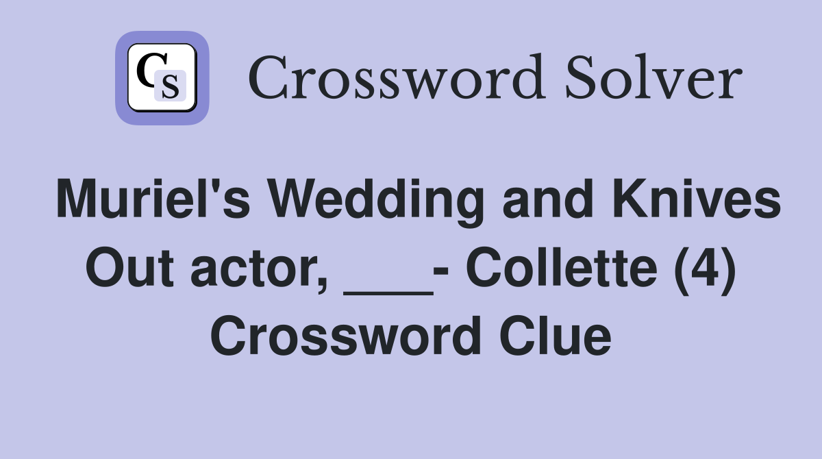 Muriel #39 s Wedding and Knives Out actor Collette (4) Crossword
