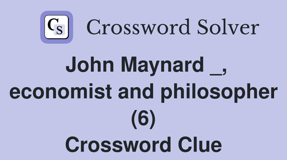 John Maynard economist and philosopher (6) Crossword Clue Answers