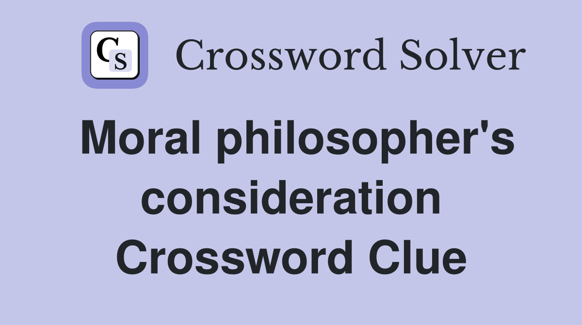 Moral philosopher s consideration Crossword Clue Answers Crossword