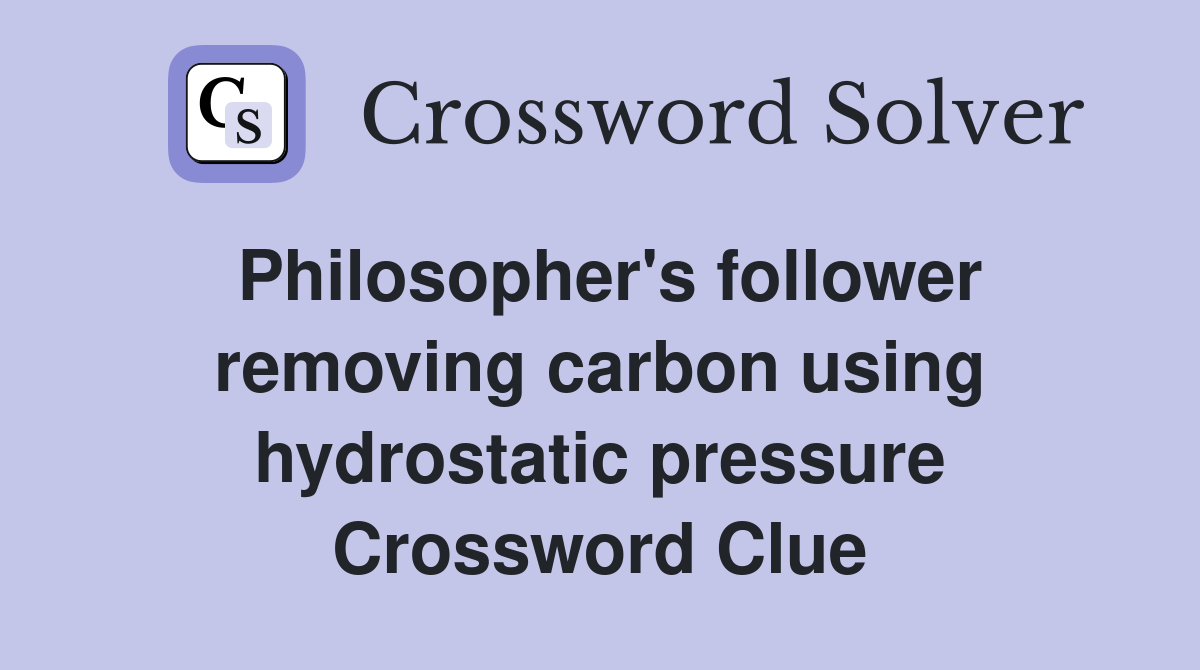 Philosopher #39 s follower removing carbon using hydrostatic pressure