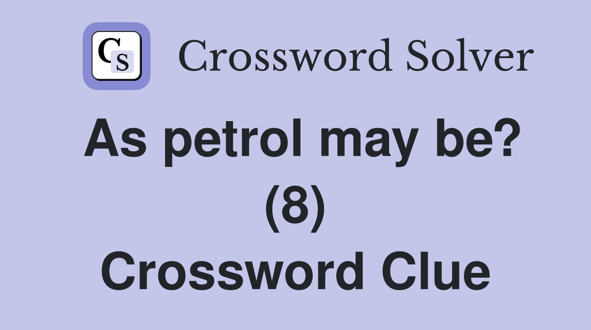 As petrol may be? (8) Crossword Clue Answers Crossword Solver