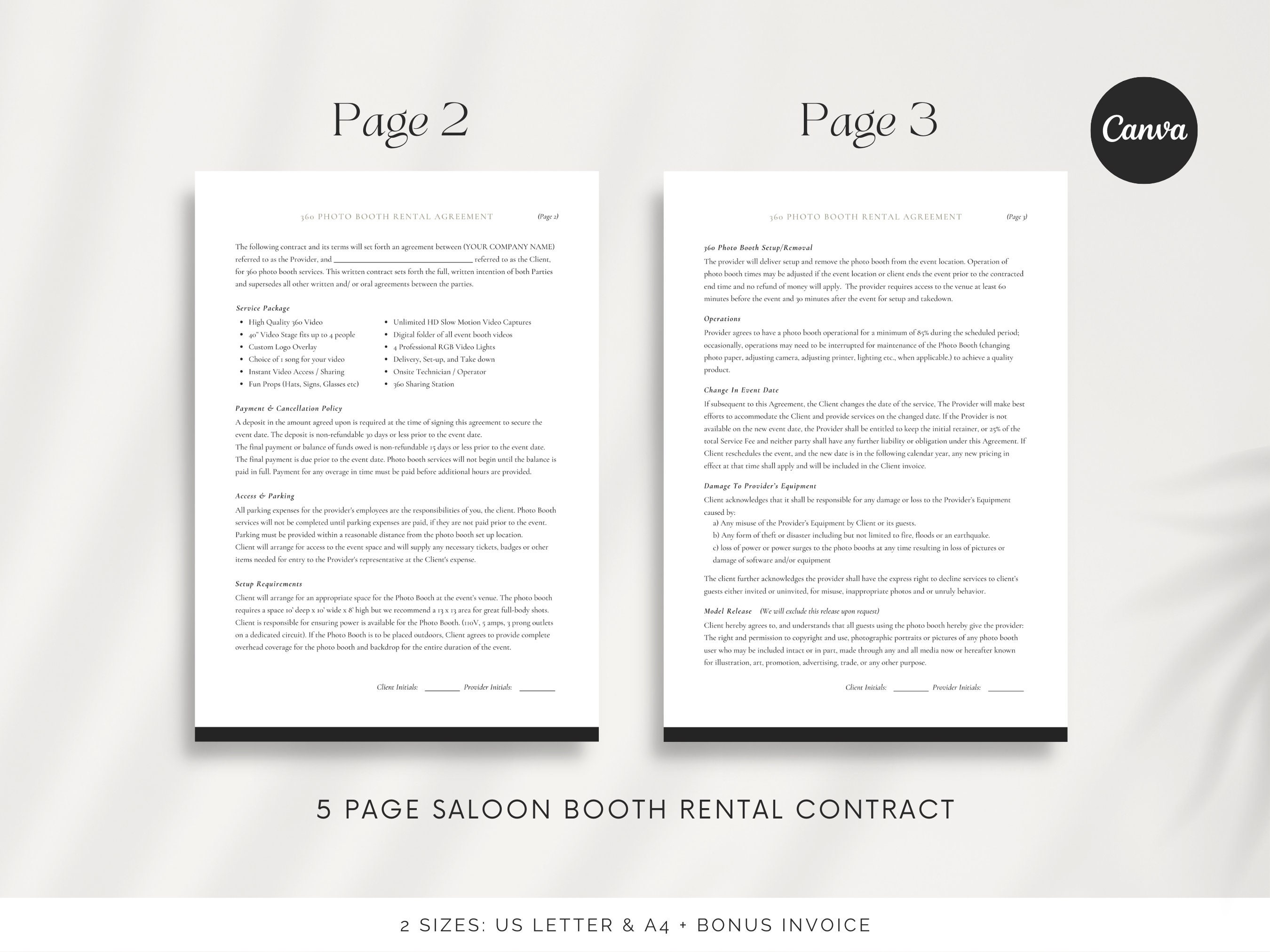 360 Photo Booth Contract Template Photo Booth Template CANVA Contract